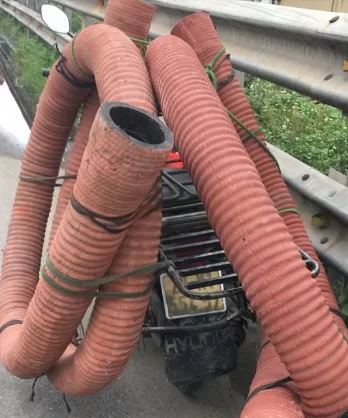 Tương ứng với nó, áp lực chịu tải (áp lực làm việc) của ống cao su hút cát lõi thép chất lượng cao lớn hơn so với ống cao su hút cát lõi thép thông thường là khoảng 4kg (0,4mpa).